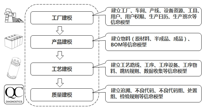 數(shù)學(xué)模型是智能化的基礎(chǔ),是把制造工廠、物料、機(jī)器、過程轉(zhuǎn)化為計(jì)算機(jī)可以識別、優(yōu)化、提升的基本手段。儲能電池制造需要建立包括電池模型、工廠模型、設(shè)備模型、工藝模型、以及質(zhì)量模型等。