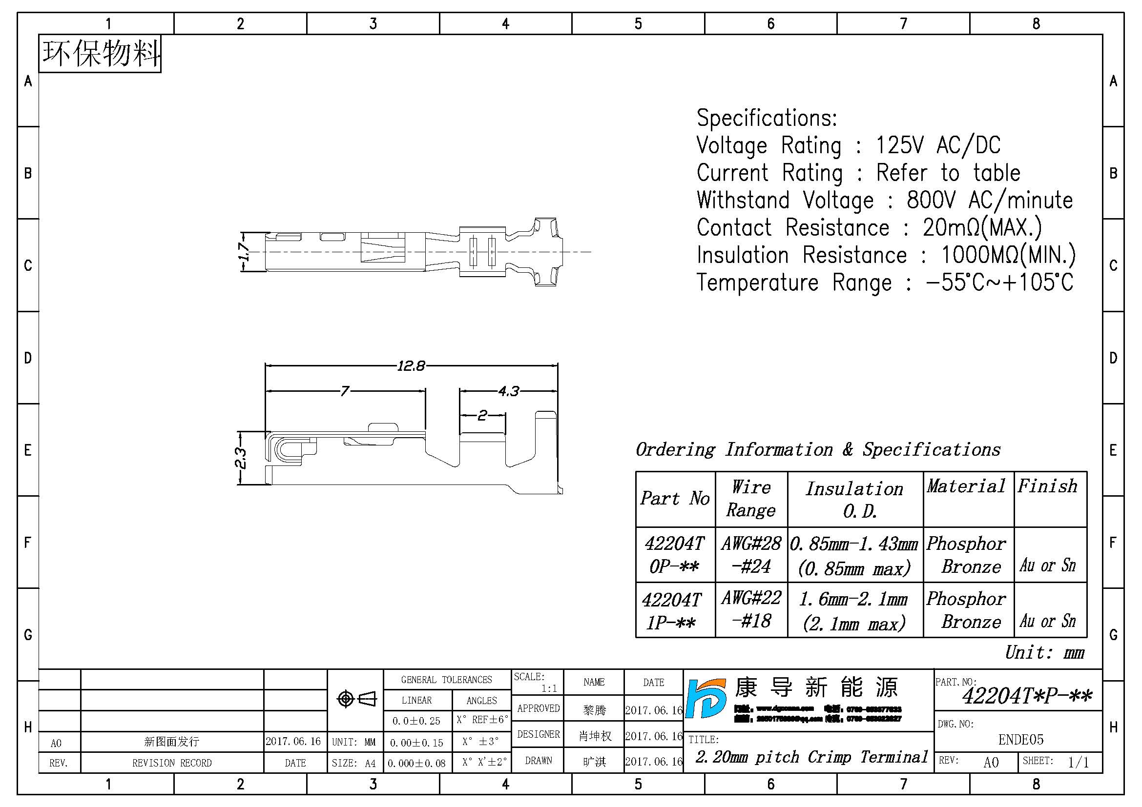 規(guī)格型號:PH:2.20MM L:12.80MM AWG18#-AWG28# 線端公端子