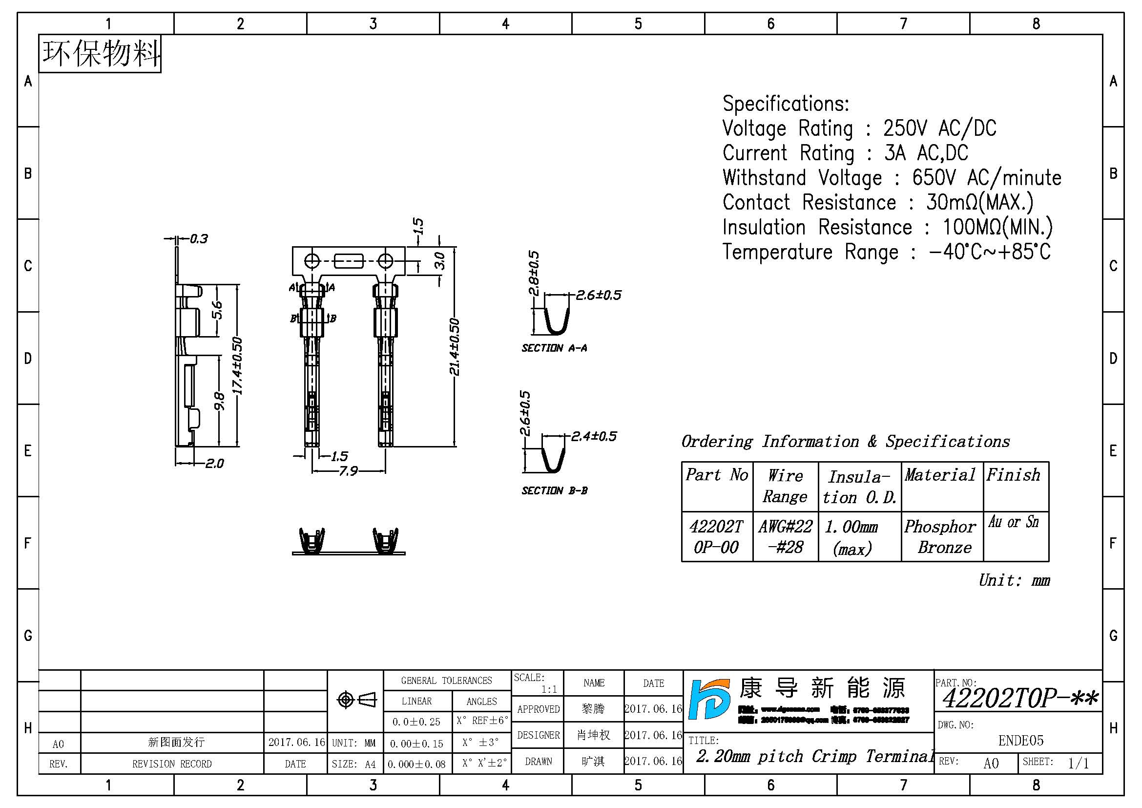 - 產(chǎn)品規(guī)格:2.20MM端子,線端母端子