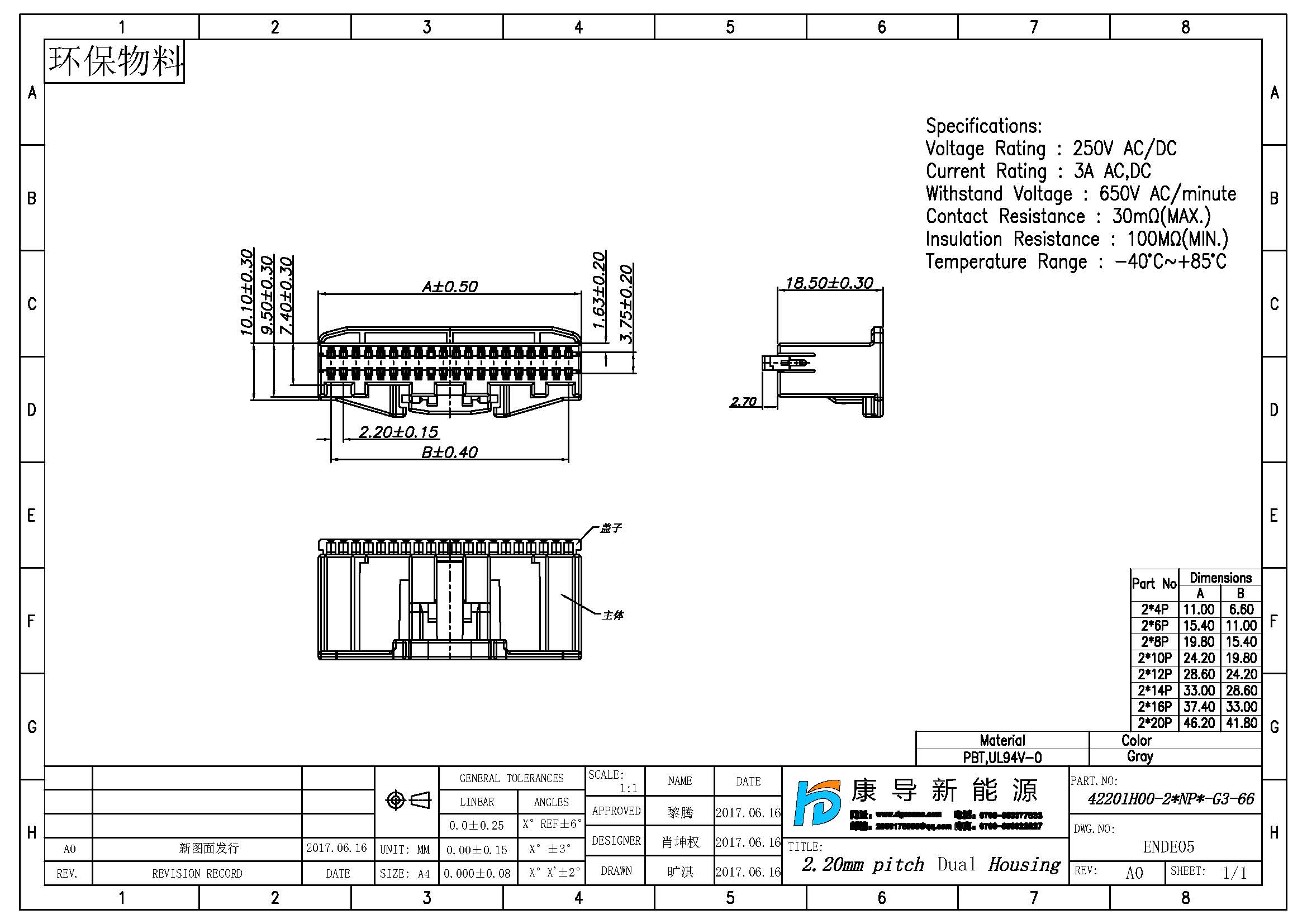 - 產(chǎn)品規(guī)格:2.20MM膠殼,雙排線端公殼