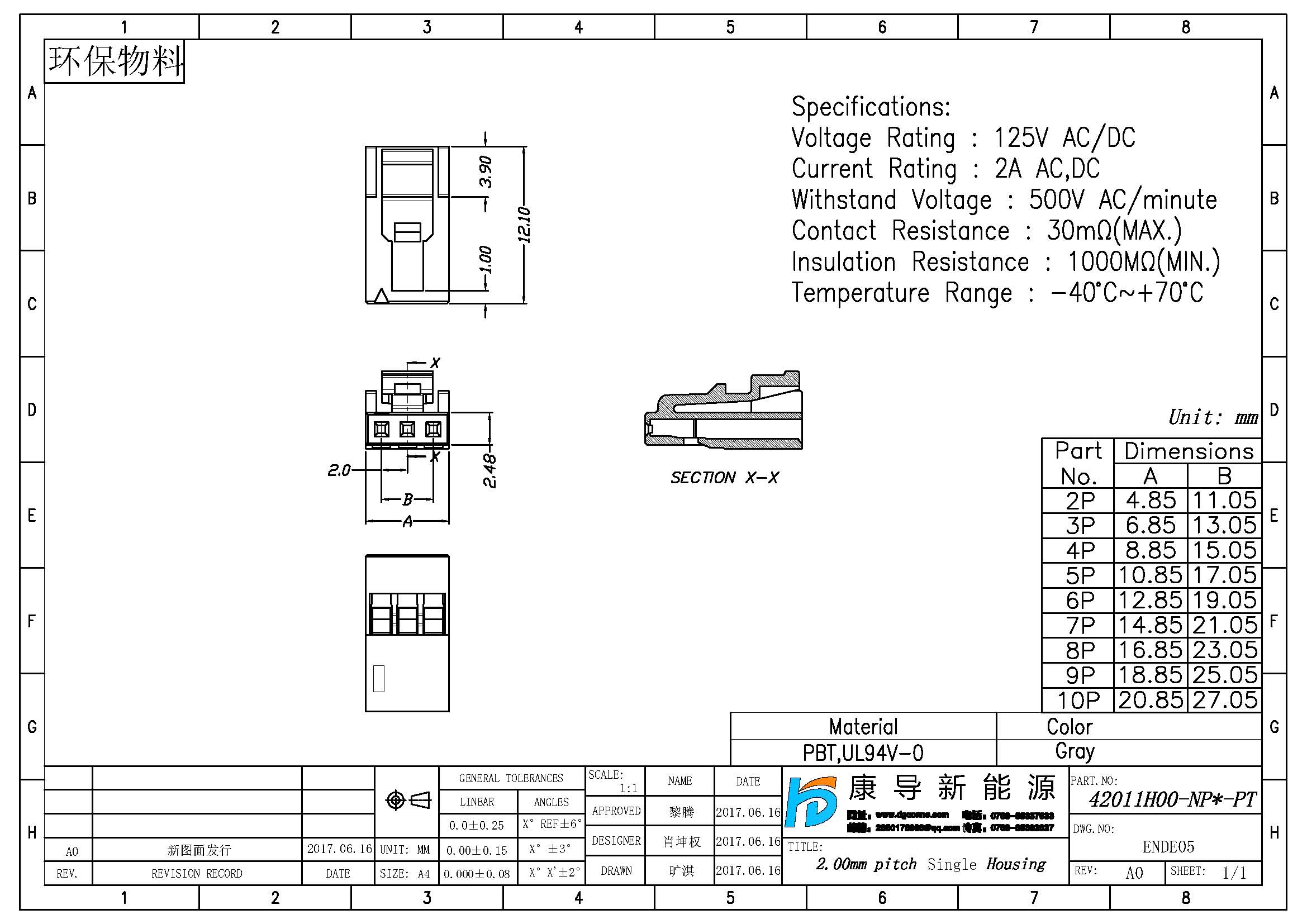 - 產(chǎn)品規(guī)格:2.00MM膠殼,單排線端公殼