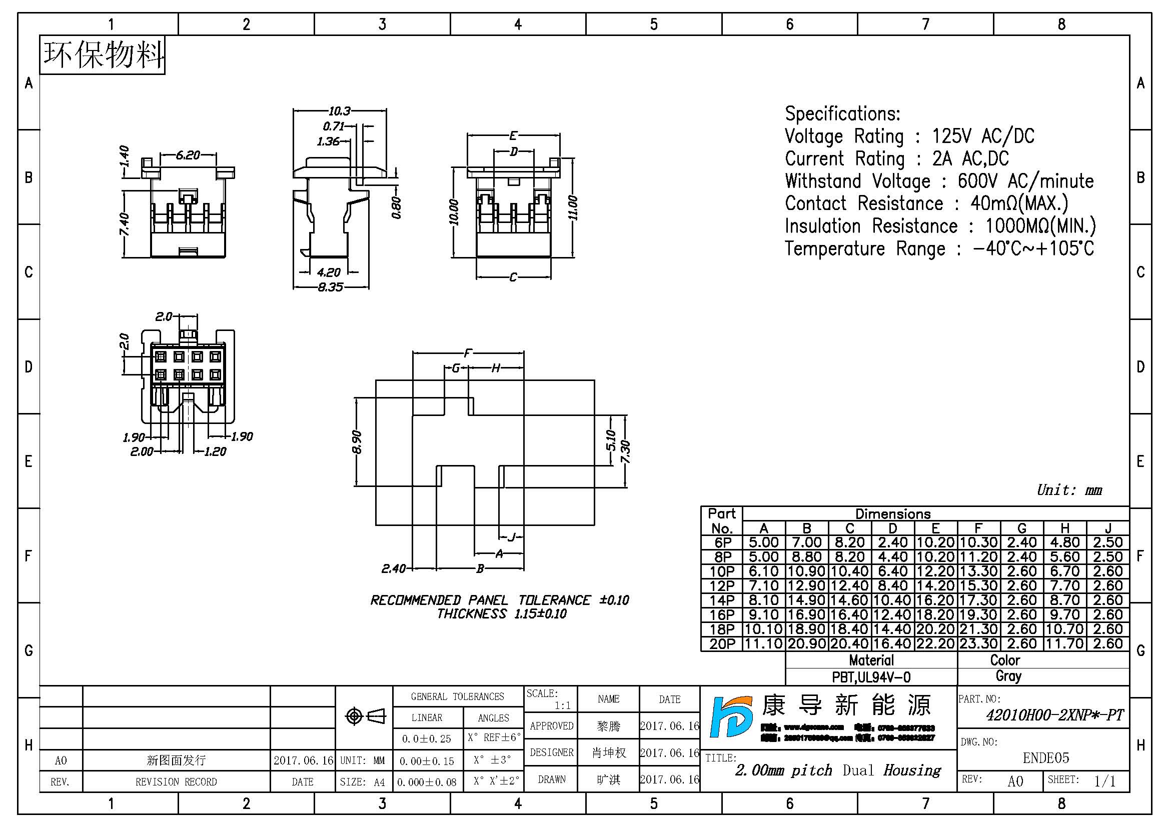 - 產(chǎn)品規(guī)格:2.00MM膠殼,雙排線端公殼