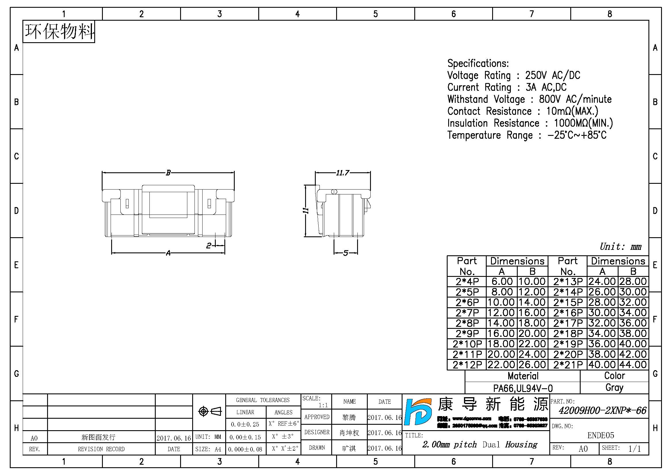 - 產(chǎn)品規(guī)格:2.00MM膠殼,雙排線端公殼