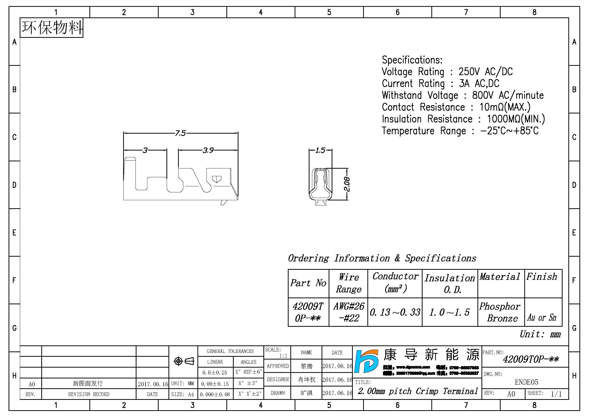 - 產(chǎn)品規(guī)格:2.00MM端子,線端母端子