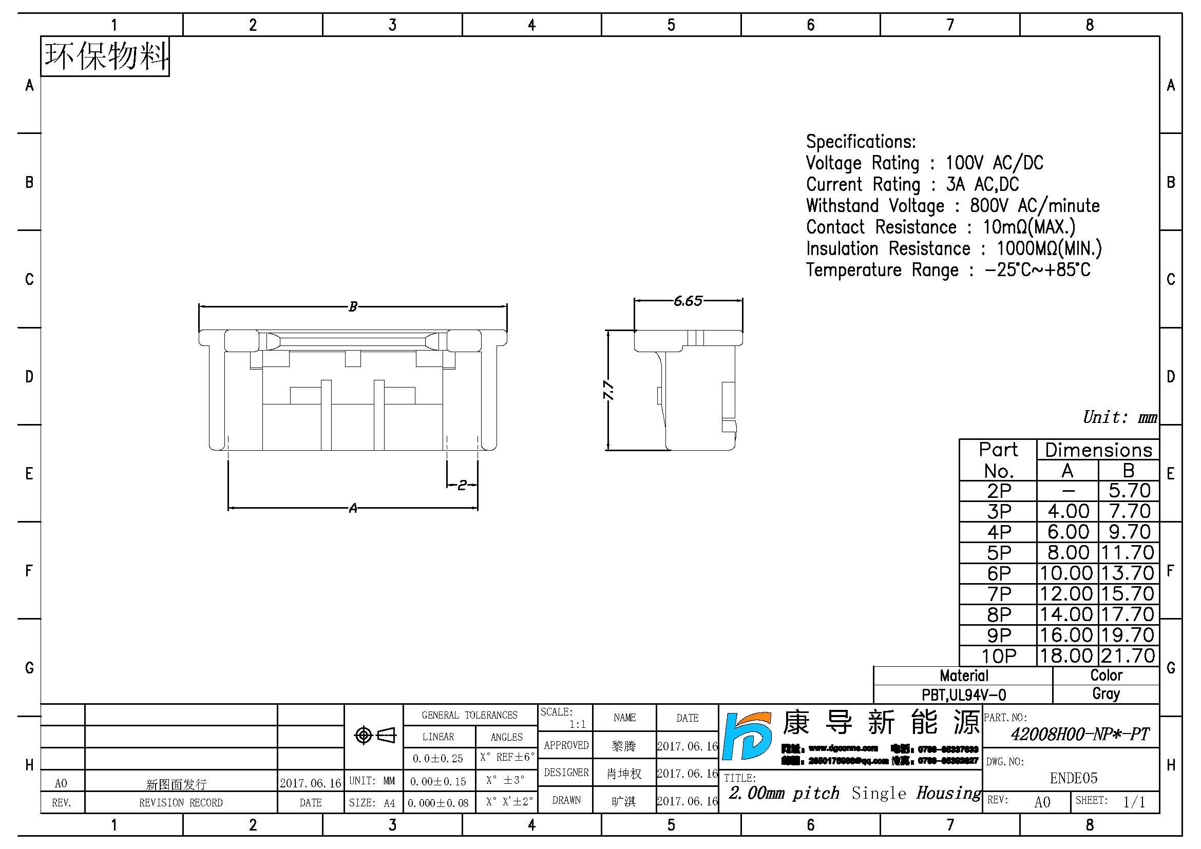 - 產(chǎn)品規(guī)格:2.00MM膠殼,單排線端公殼