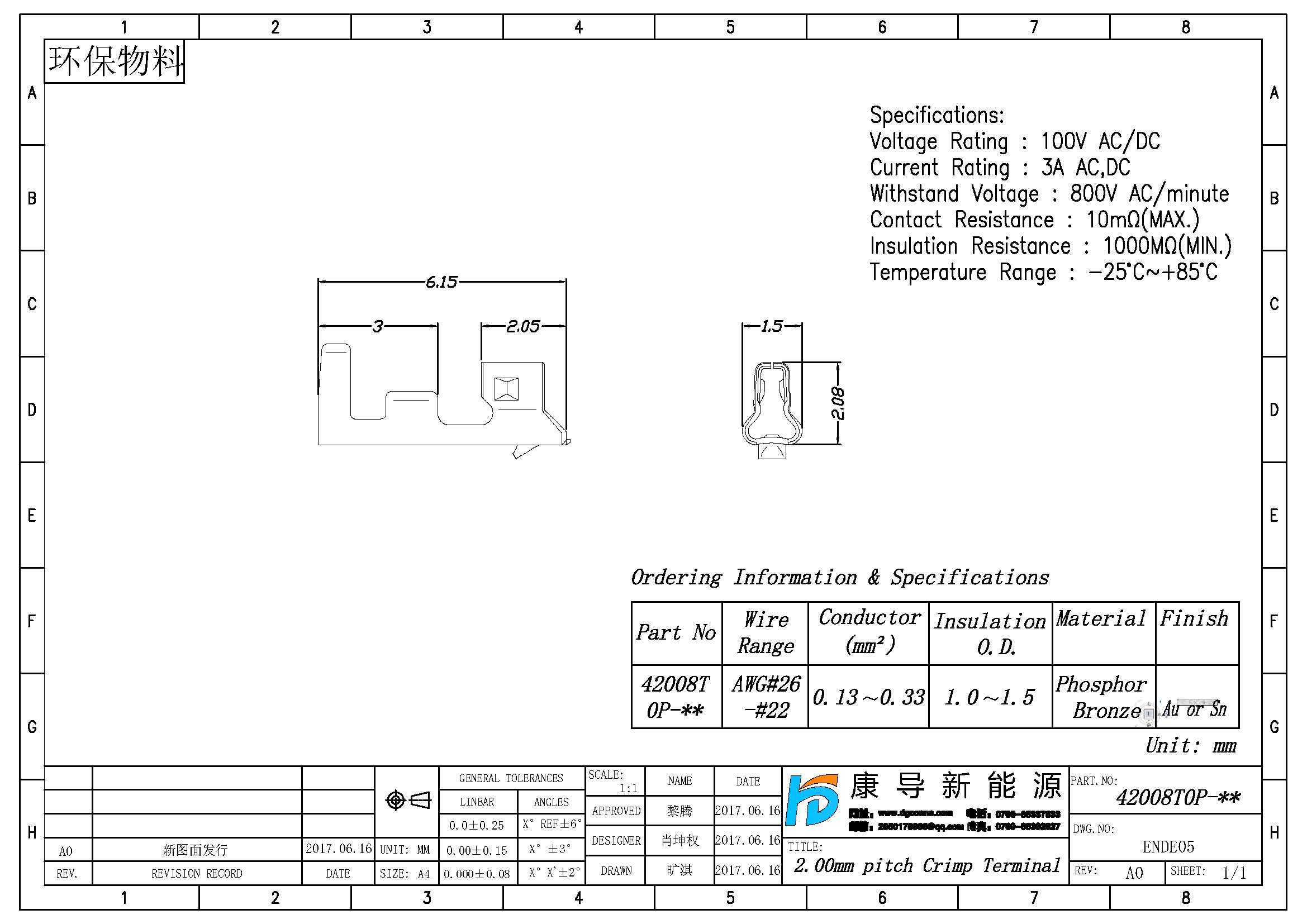 規(guī)格型號(hào):PH:2.0MM L:6.15MM AWG22#-AWG26# 線端母端子