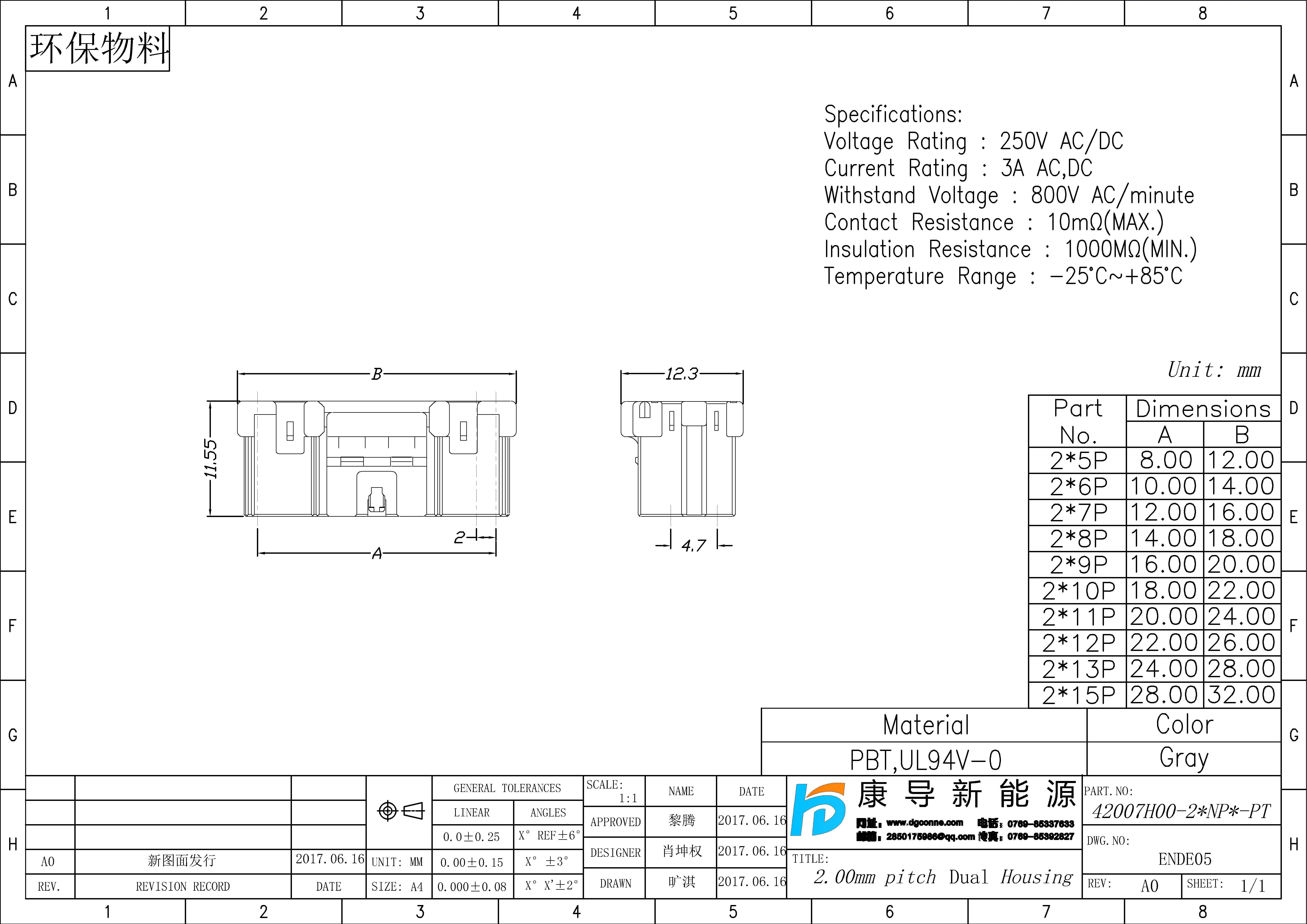 - 產(chǎn)品規(guī)格:2.00MM膠殼,雙排線端公殼