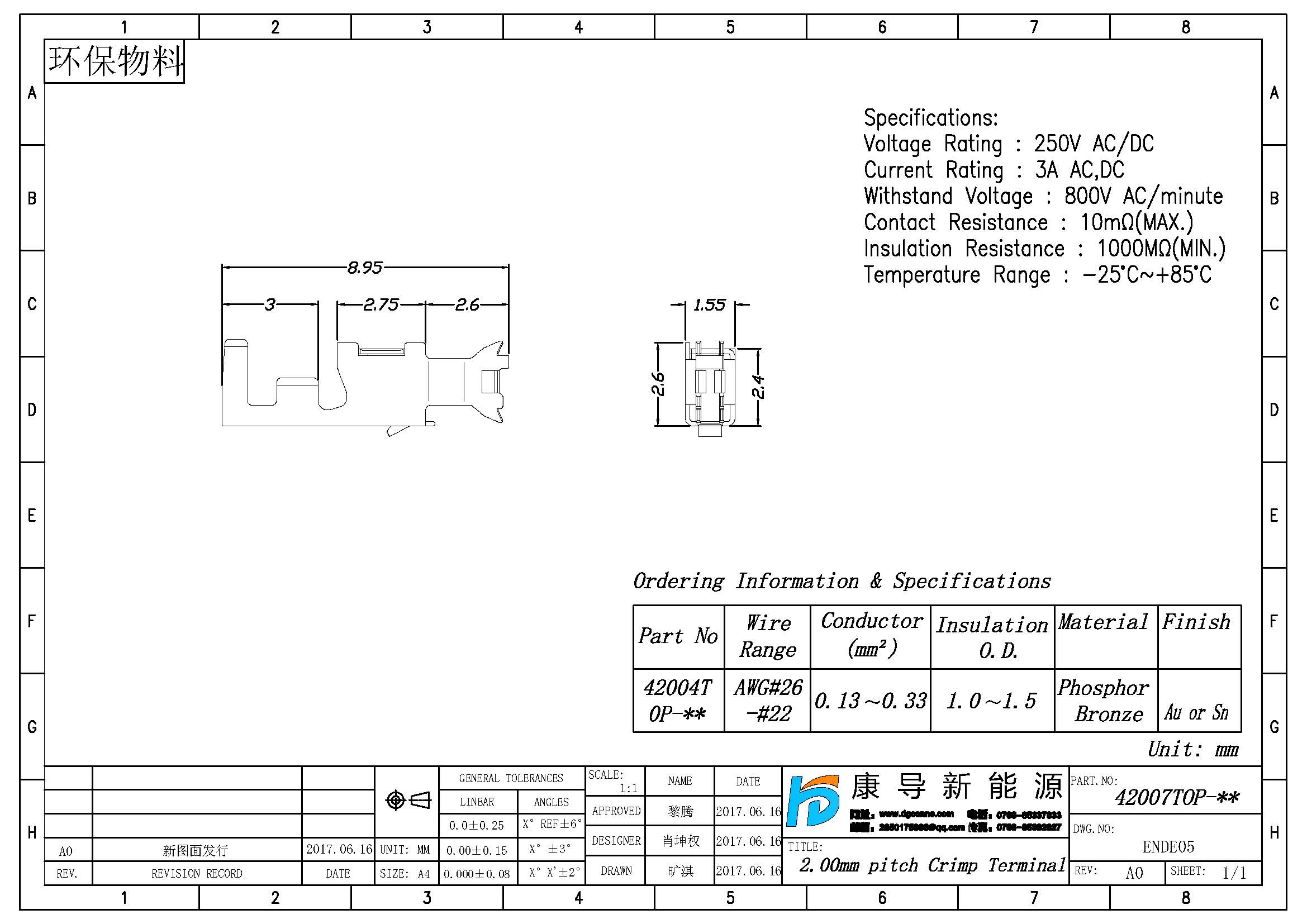 - 產(chǎn)品規(guī)格:2.00MM端子,線端母端子