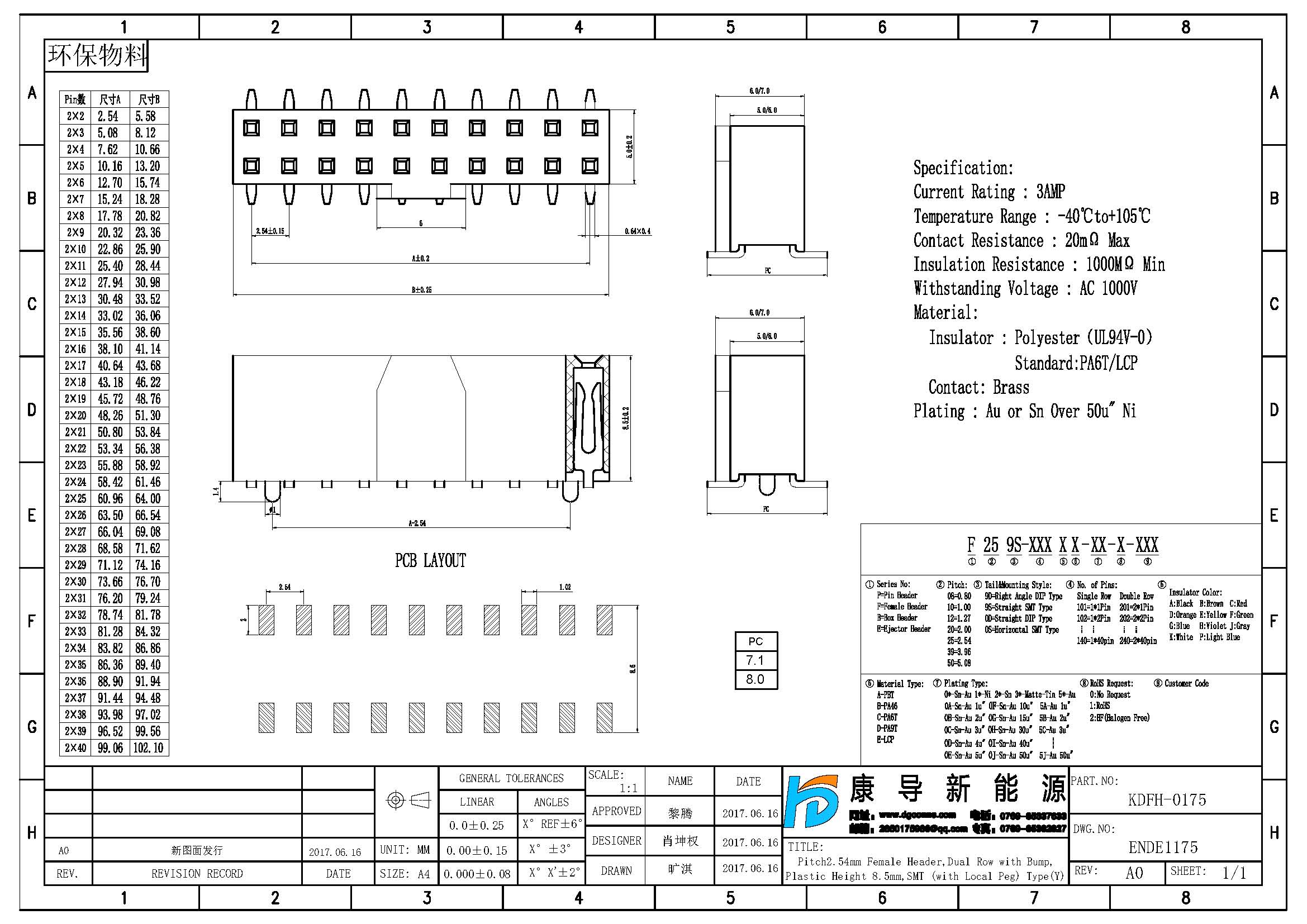 - 產(chǎn)品規(guī)格:2.54MM雙排母,貼片,Y端防呆