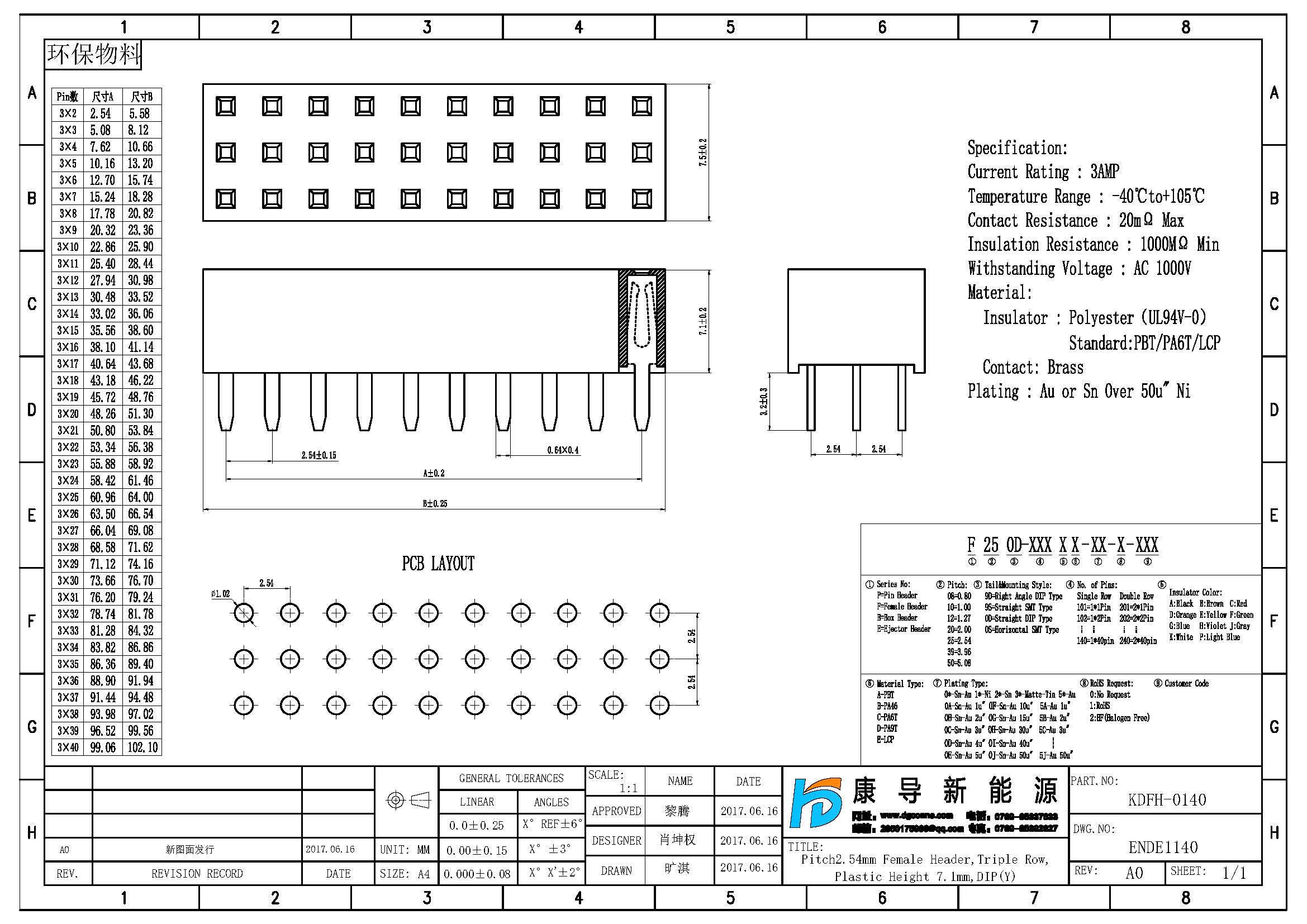 - 產(chǎn)品規(guī)格:2.54MM三排母,直針,Y端