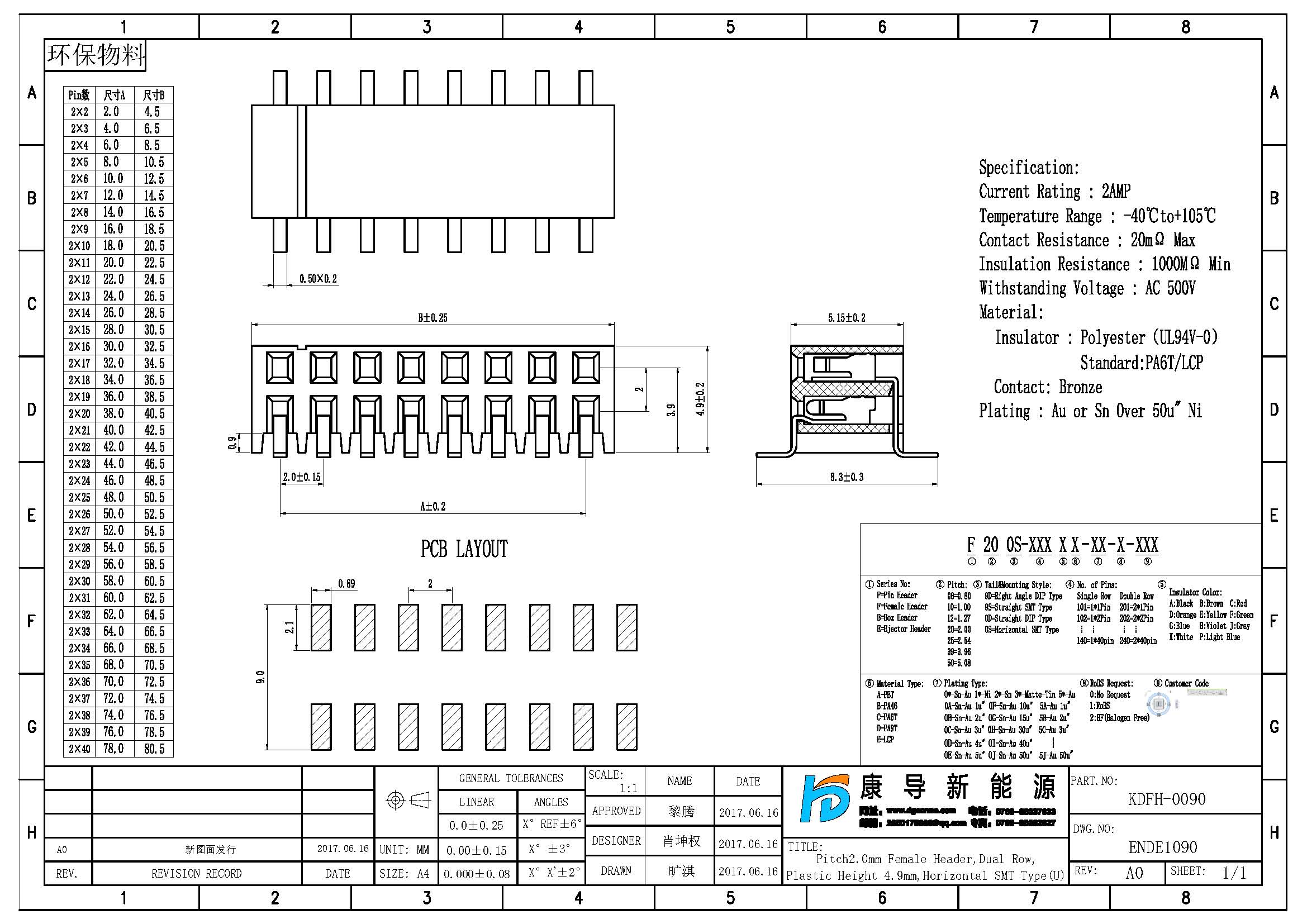 - 產品規(guī)格:2.0MM雙排母,側插貼片,U端