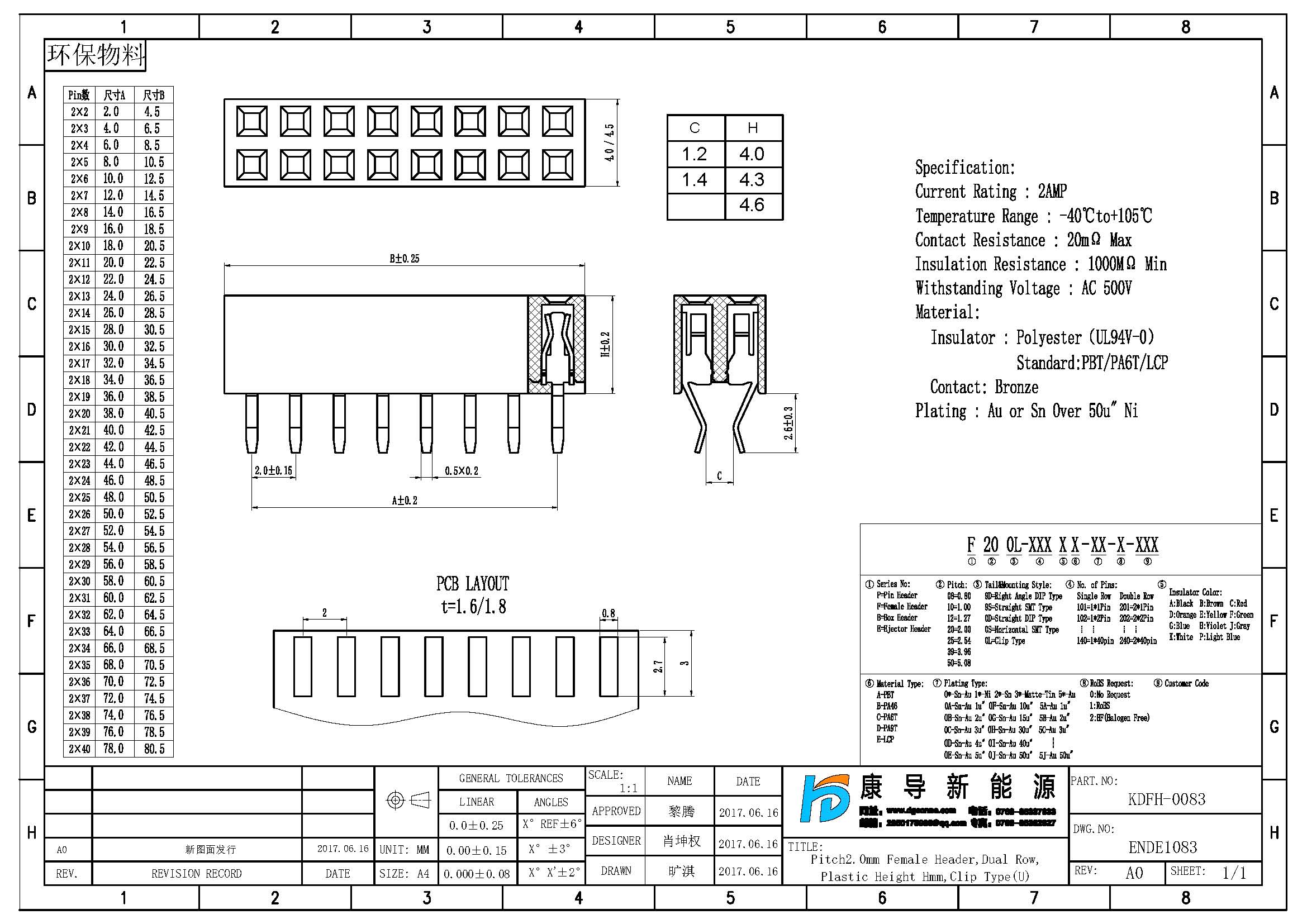 - 產(chǎn)品規(guī)格:2.0MM雙排母,夾板,U端