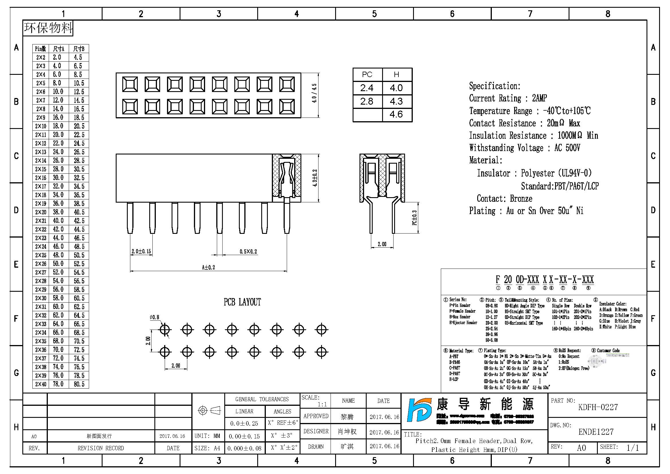 - 產(chǎn)品規(guī)格:2.0MM雙排母,直針,U端防滲錫