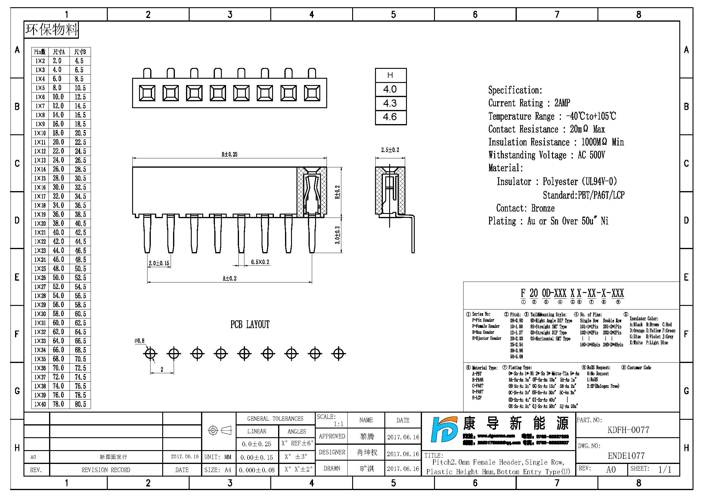 - 產(chǎn)品規(guī)格:2.0MM單排母,蜈蚣腳,U端