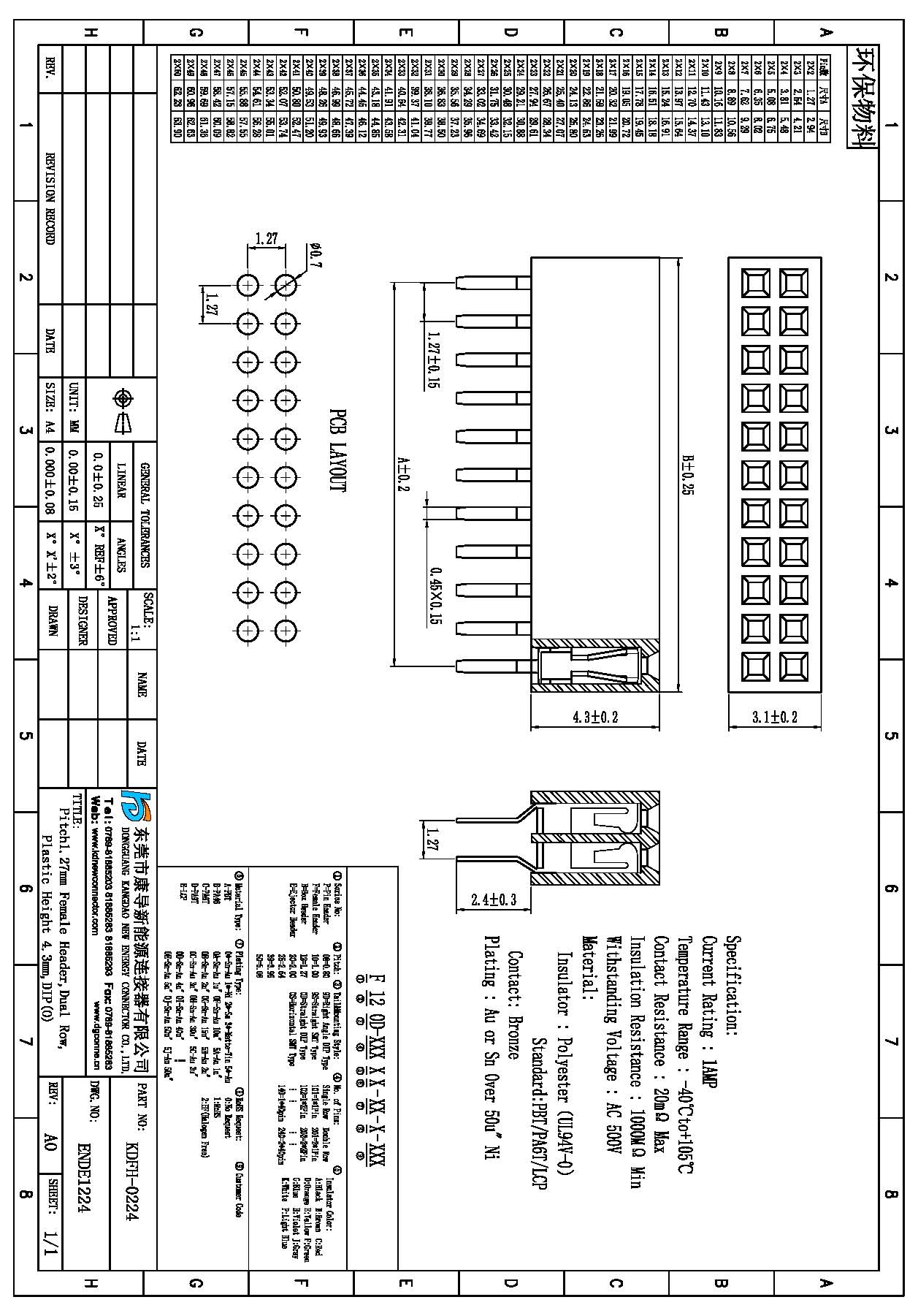 規(guī)格型號(hào):FH:1.27MM H:4.3MM 2*NP 180度 O端防漏錫