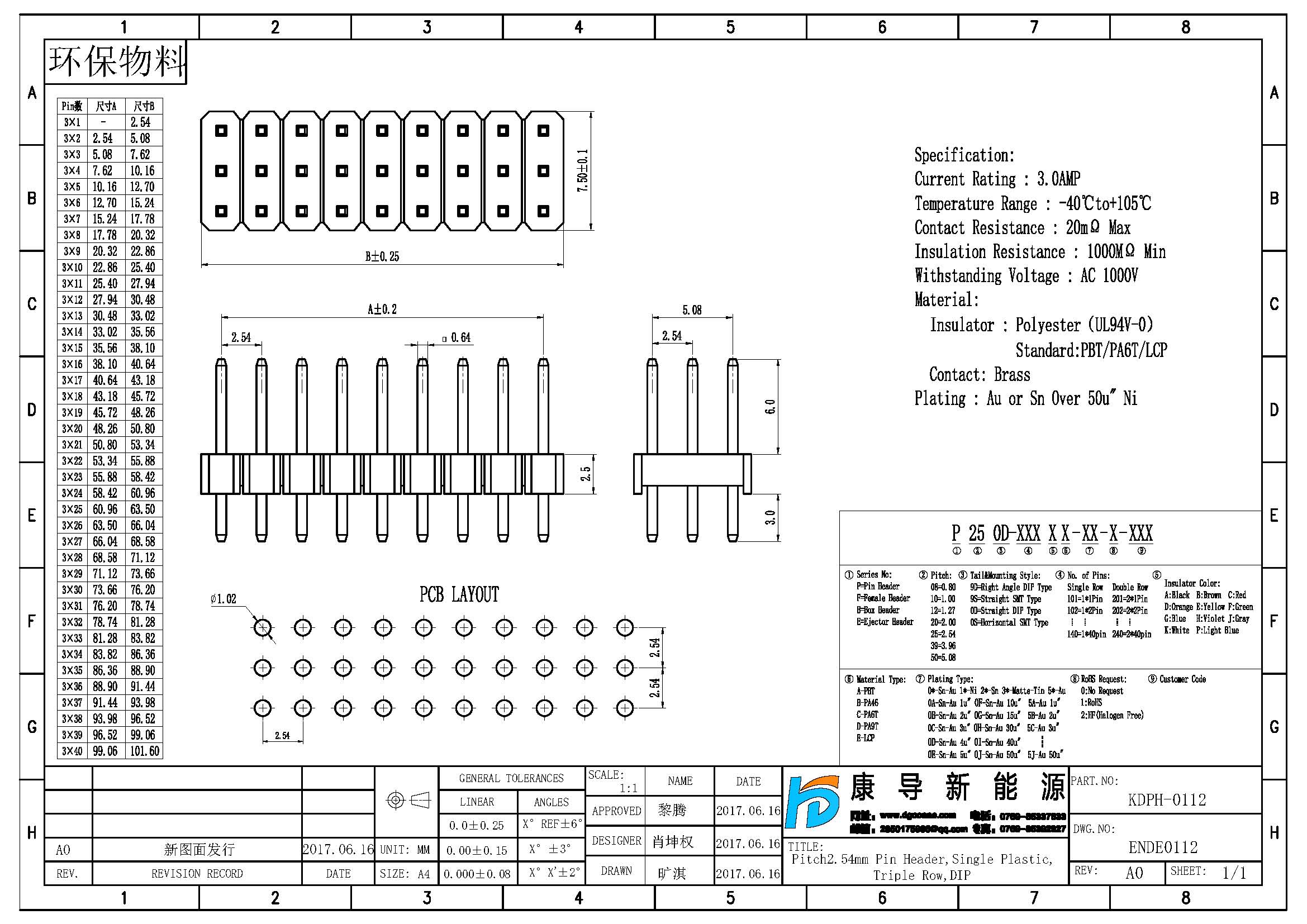 - 產(chǎn)品規(guī)格:2.54MM三排針,單塑直針