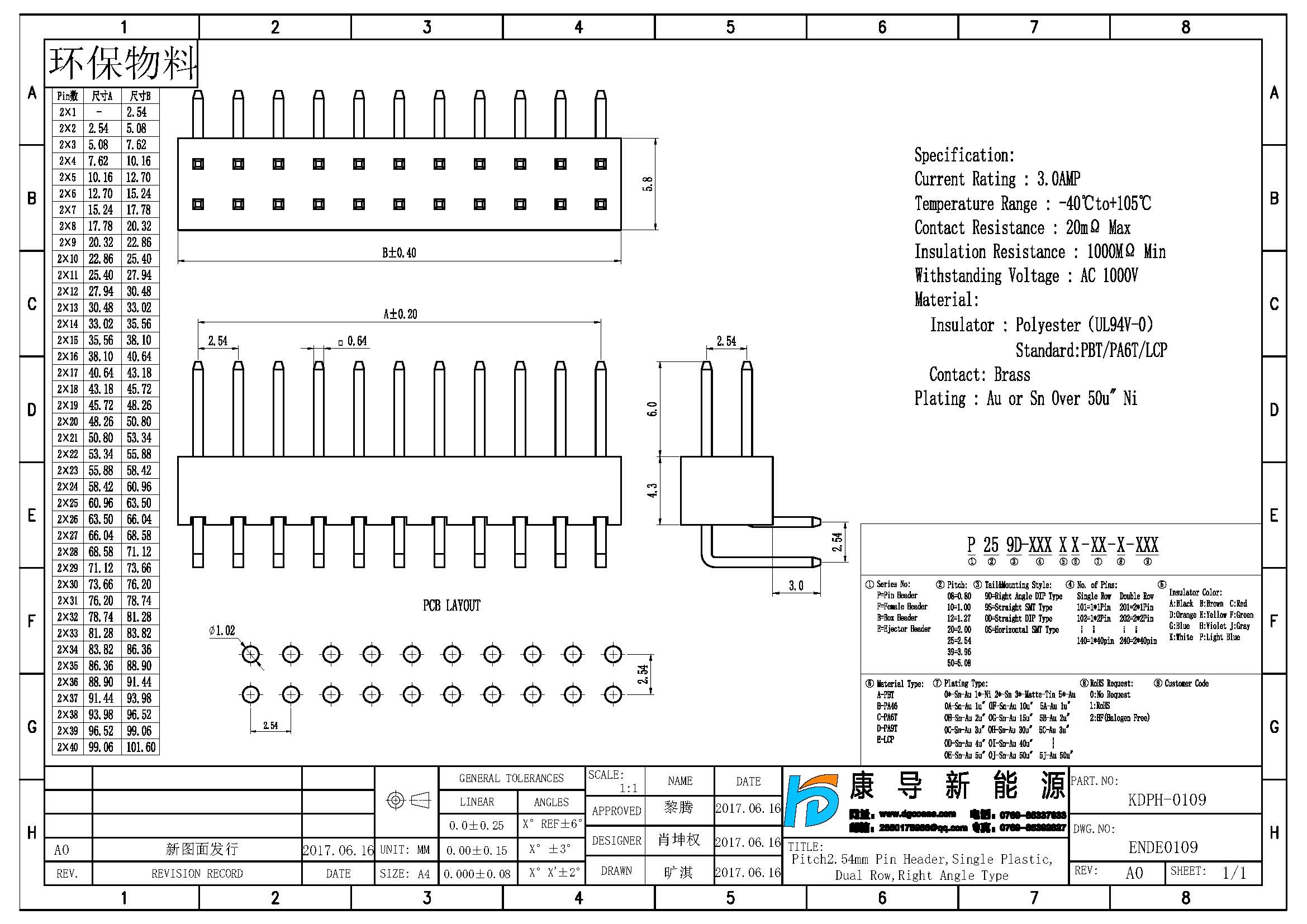 規(guī)格型號(hào):PH:2.54MM 2*NP 90度 雙排單塑