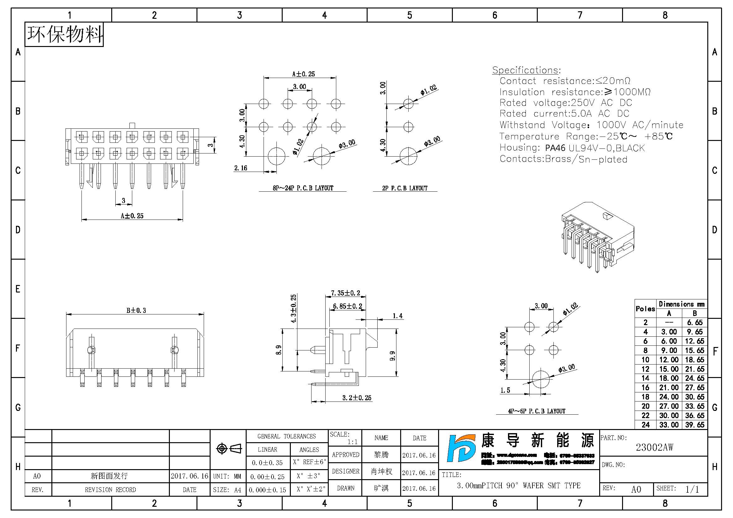 規(guī)格型號:PH:3.0MM H:7.35MM 2*NP 90度