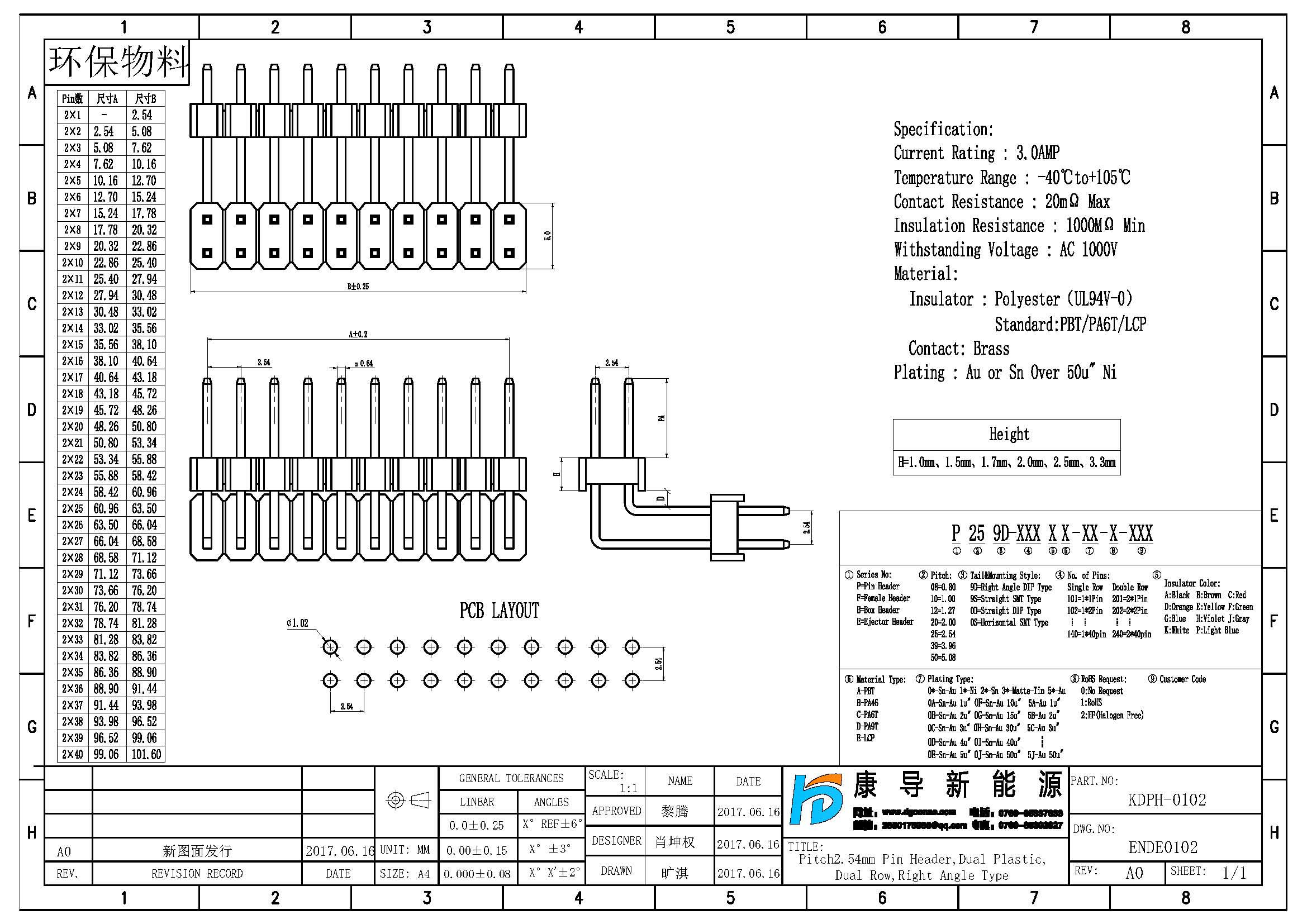 - 產(chǎn)品規(guī)格:2.54MM雙排針,多塑彎針