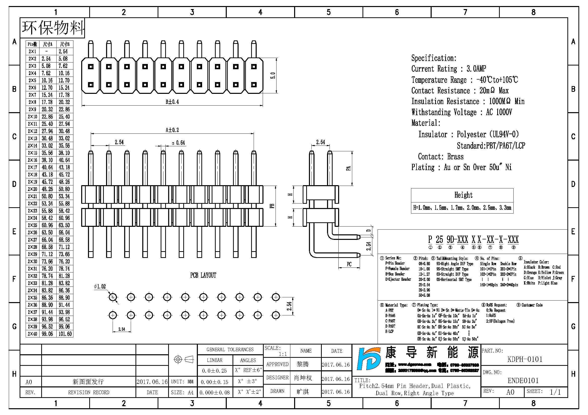 - 產(chǎn)品規(guī)格:2.54MM雙排針,多塑彎針