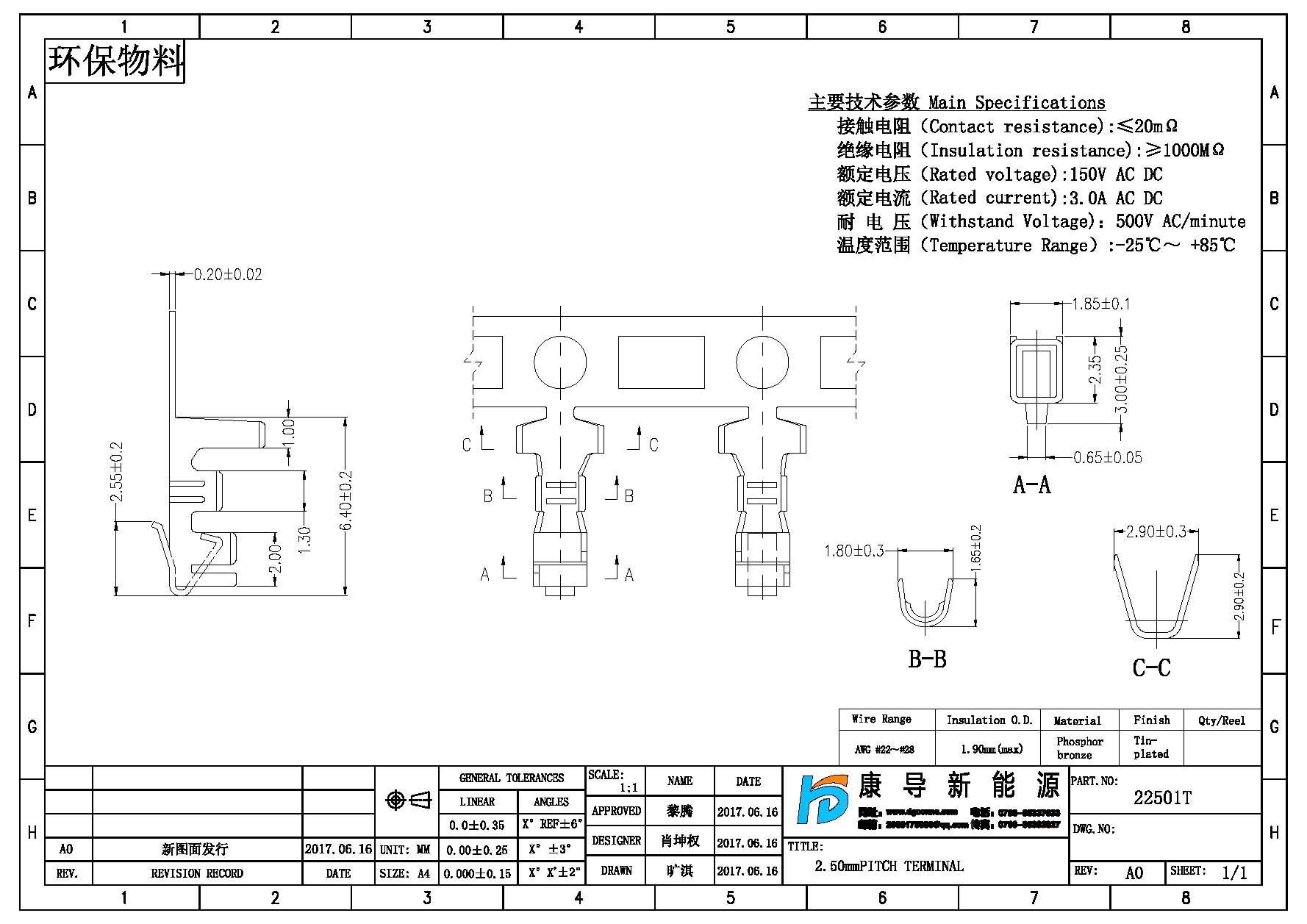 - 產(chǎn)品規(guī)格:2.50MM端子,線端母端子