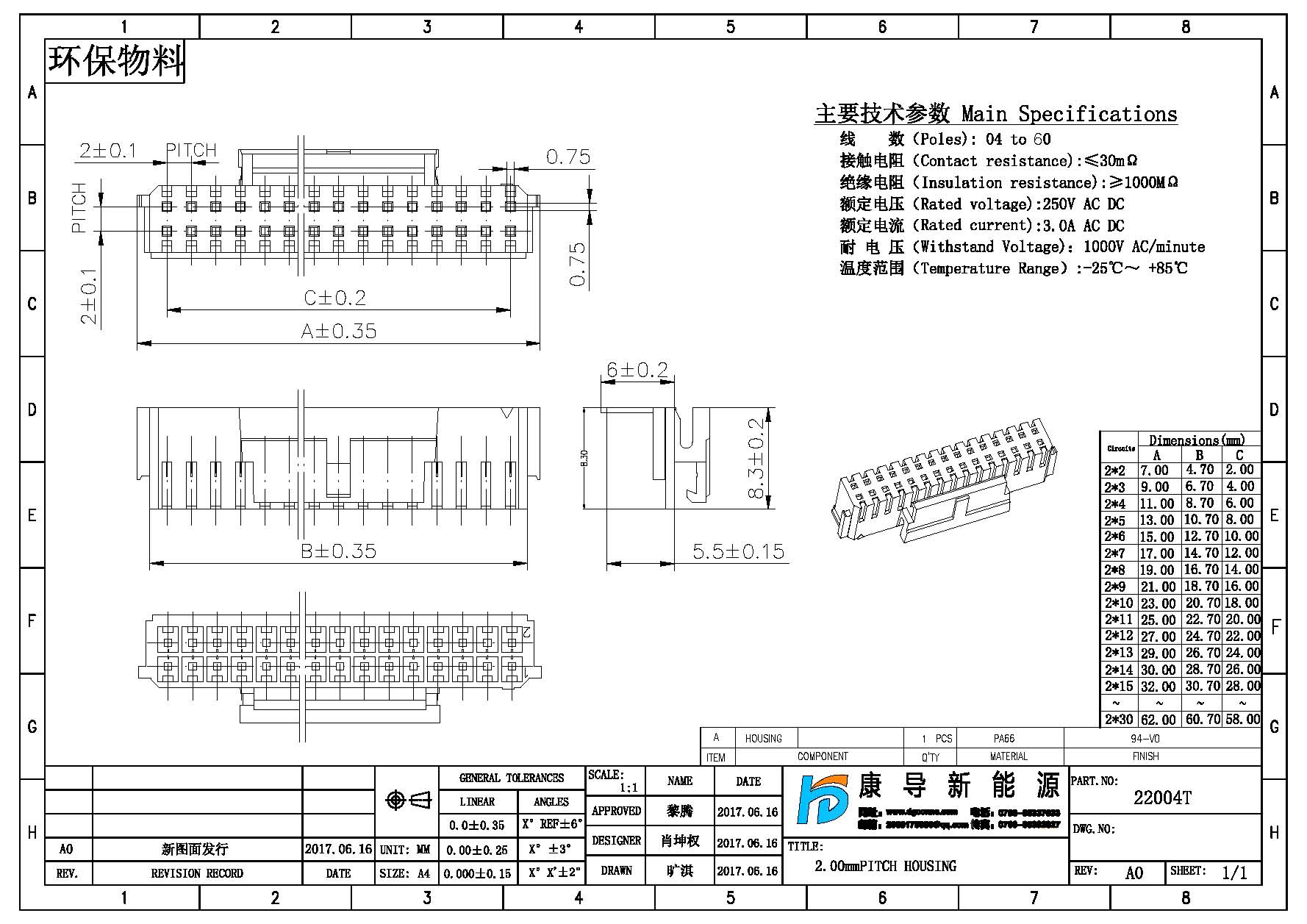產(chǎn)品間距:2.00MM