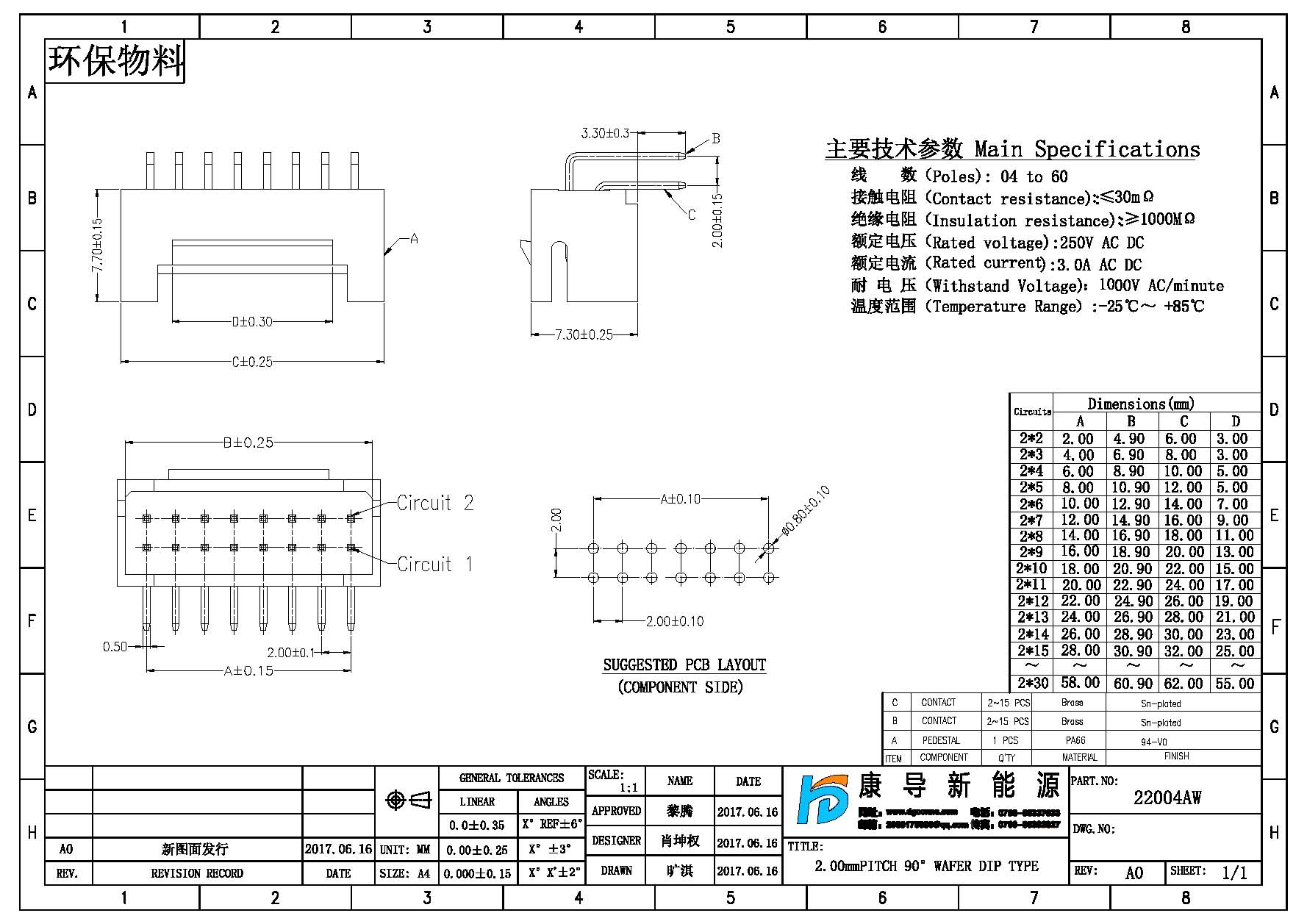 - 產(chǎn)品規(guī)格:2.00MM針座,雙排彎針