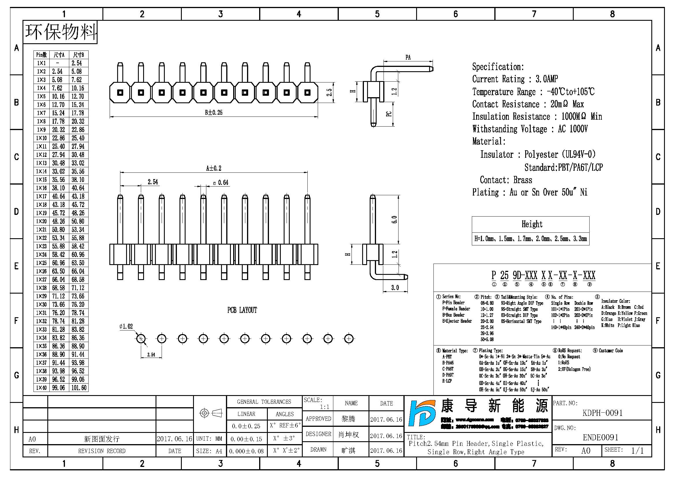 - 產(chǎn)品規(guī)格:2.54MM單排針,單塑彎針