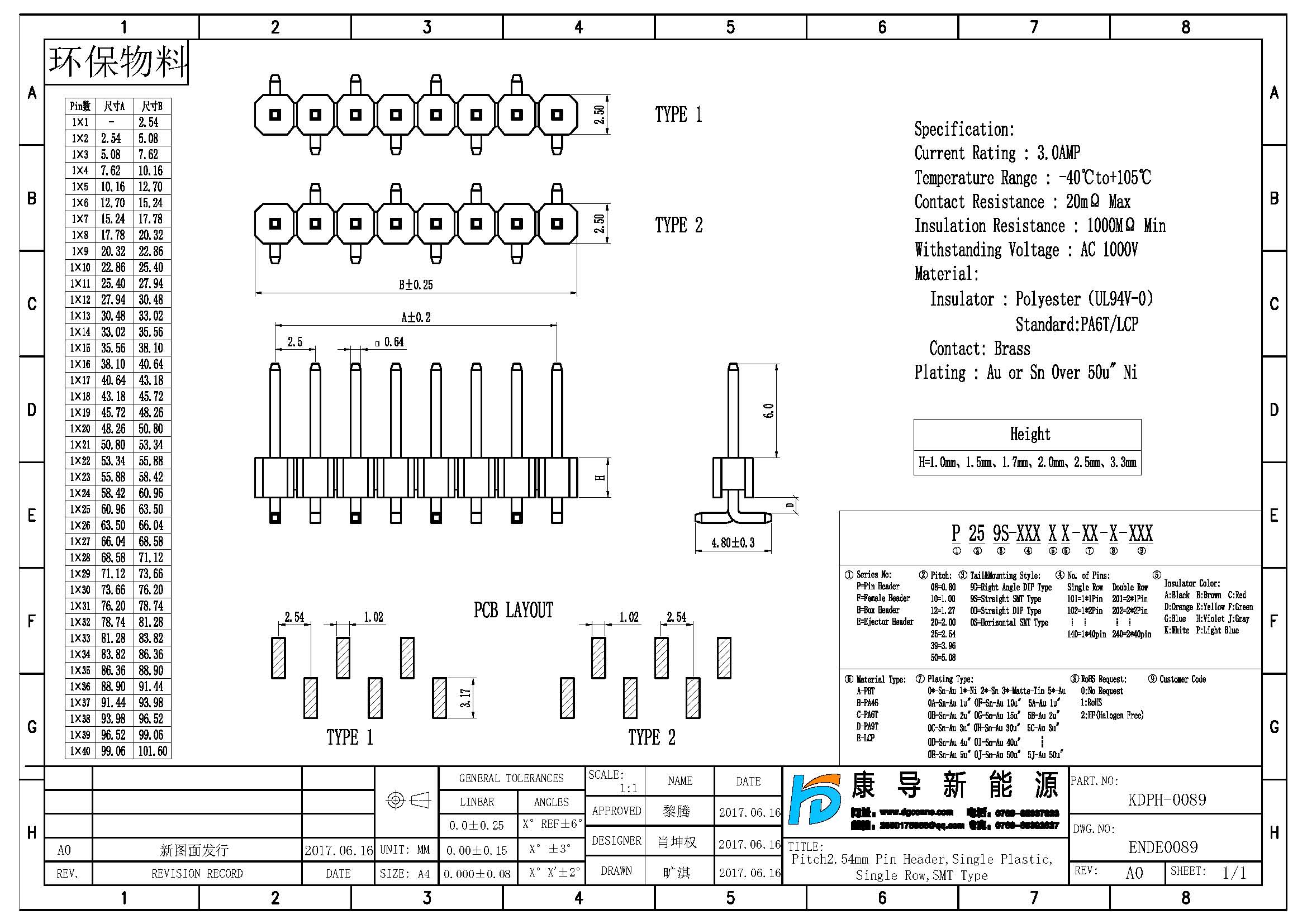 - 產(chǎn)品規(guī)格:2.54MM單排針,單塑錯位貼