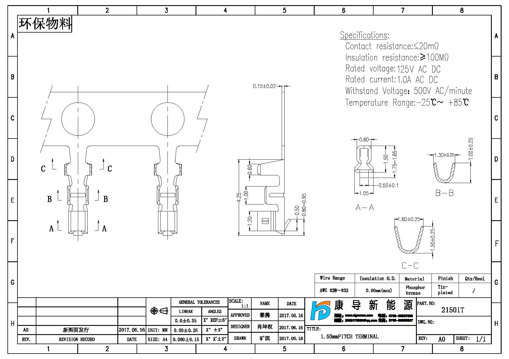 - 產(chǎn)品規(guī)格:1.50MM端子,線端母端子