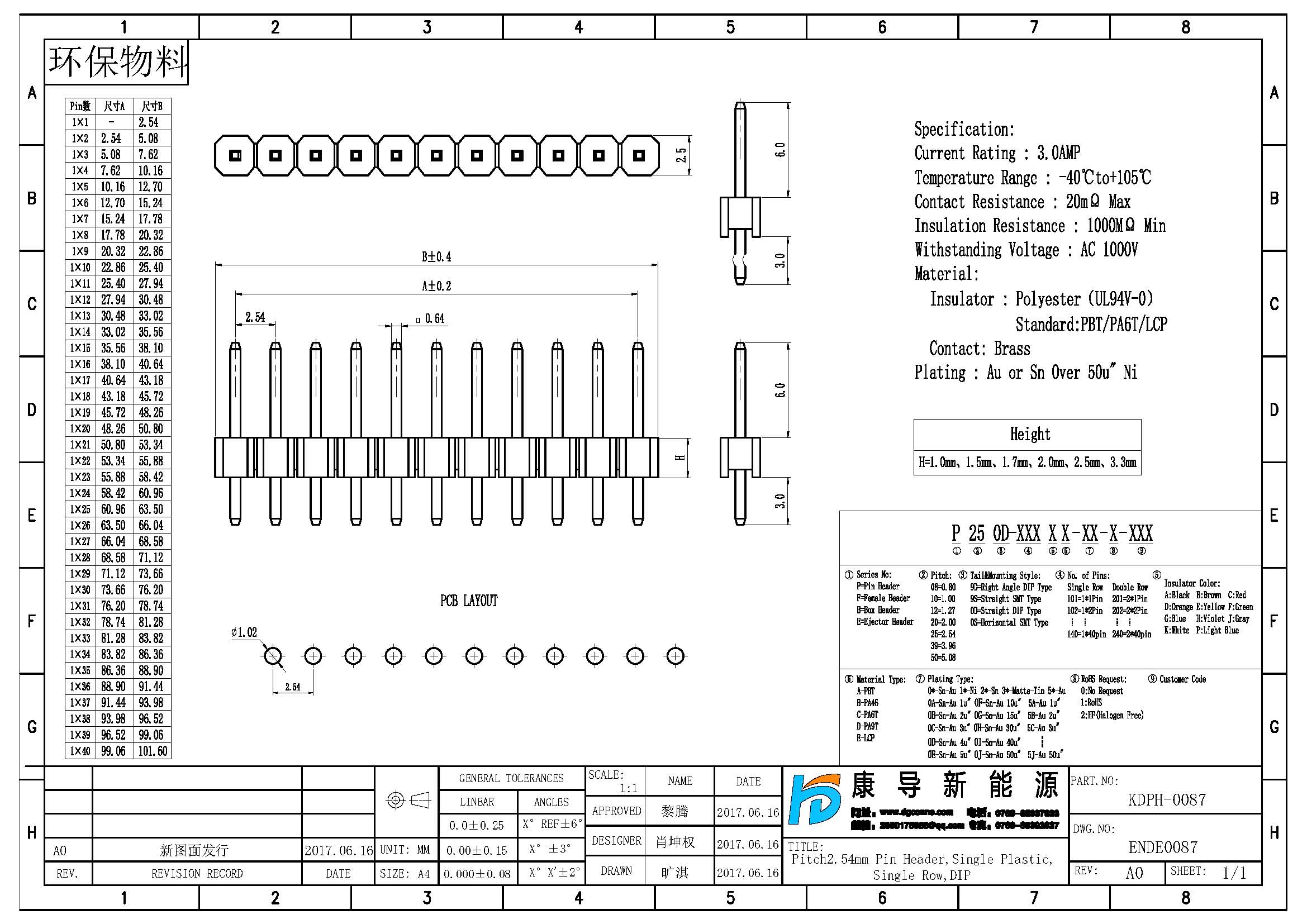 - 產(chǎn)品規(guī)格:2.54MM單排針,單塑直針